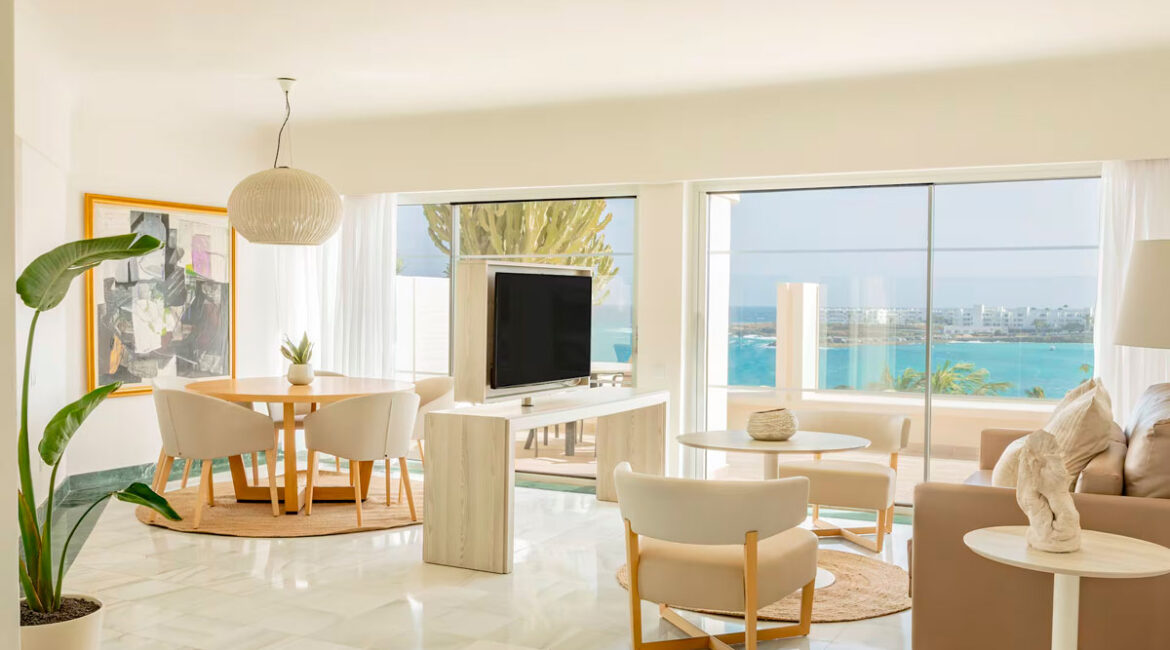 Colores claros y materiales naturales aportan a la habitación el ambiente acogedor que los huéspedes ansían tras un día en este paraíso que parece salido de otro planeta.